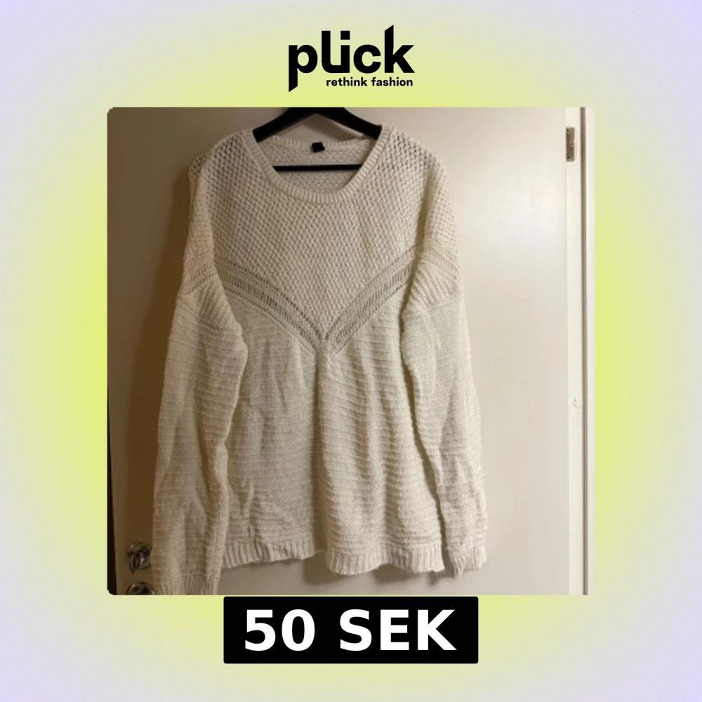 Säljer en mysig vit stickad tröja från Pimkie. Tröjan har ett fint stickat mönster och långa ärmar. Perfekt för kyligare dagar.