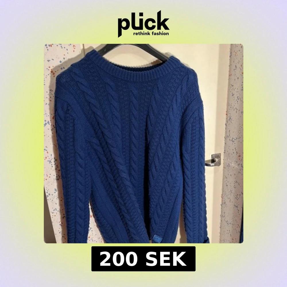 Säljer en marinblå stickad tröja från Didriksons med klassiskt kabelstickat mönster. Tröjan har rund hals och långa ärmar. Tröjan är i storlek L. Denna tröja är väldigt tjock och varm, därav priset.