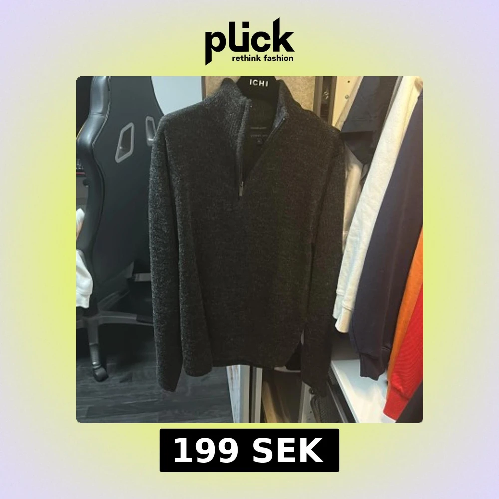 Säljer en mörkgrå stickad tröja från Stormy Life i storlek L. Tröjan har hög krage och halv dragkedja framtill, perfekt för kyliga dagar. Mjuk och skön med klassisk passform. Snygg till både jeans och chinos!