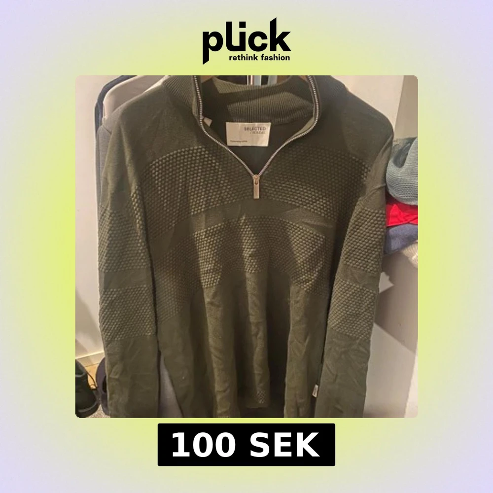 Snygg olivgrön stickad tröja från Selected Homme med strukturerat mönster och half zip-dragkedja vid halsen. Tröjan har lång ärm och ribbad krage, perfekt för lager-på-lager-stil. Passar dig som gillar en modern och avslappnad look.