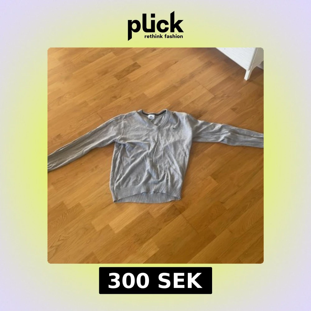 Grå stickad tröja från Lacoste med klassisk v-ringning och diskret krokodillogga på bröstet. Långärmad modell med ribbade muddar och nederkant. Perfekt för dig som gillar stilren och enkel design.
