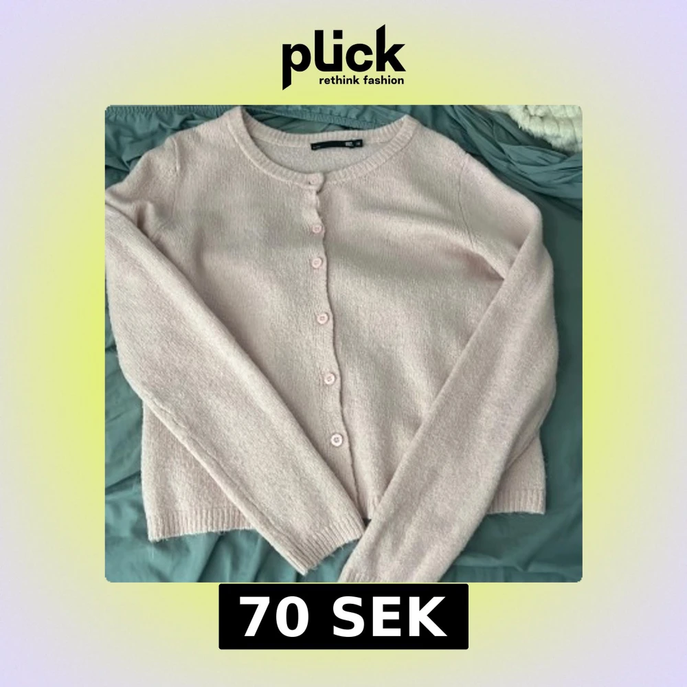 Säljer en söt ljusrosa stickad kofta från lager 157 i storlek XS. Koftan har rund halsringning, långa ärmar och knäpps med matchande rosa knappar framtill. Perfekt att slänga över en topp för en chill look.