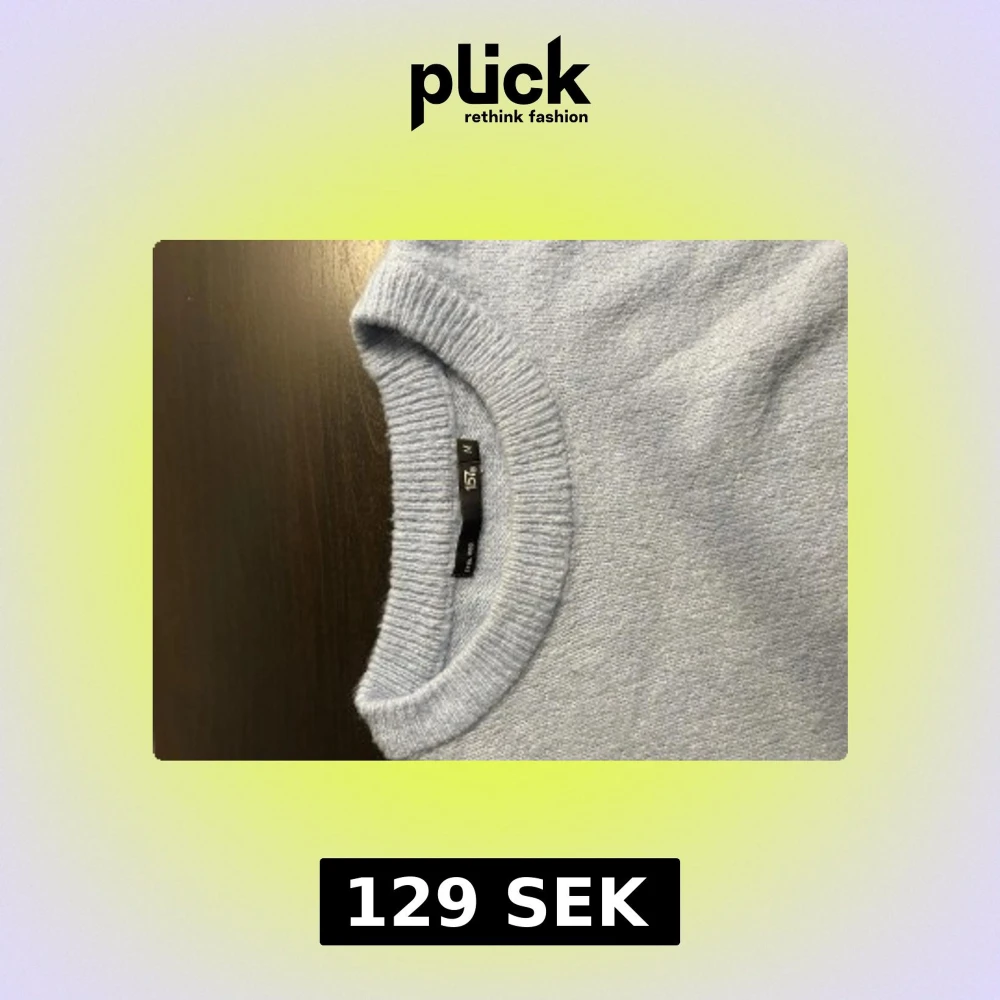 Mysig ljusblå stickad tröja från 157 med rund hals och ribbade muddar. Perfekt för att hålla värmen under kyliga dagar. Enkel och stilren design som är lätt att matcha med dina favoritjeans eller kjol.