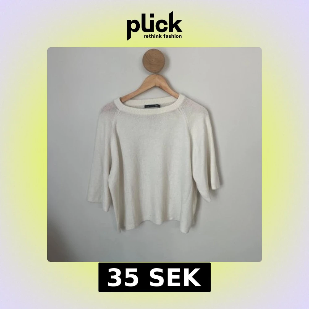 Vit stickad tröja från Lager 157 med rund hals och trekvartsärm. Tröjan har en mjuk och lite loose passform. Är storlek M men passar även som S. Hör av dig om det är något!