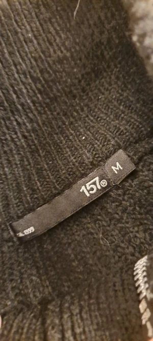 Svart stickad tröja från 157 i storlek M. Tröjan har en ribbad struktur, lång ärm och en snygg half zip-dragkedja framtill. Hög krage som ger extra stilpoäng och värme. Perfekt för dig som gillar enkel och clean look.