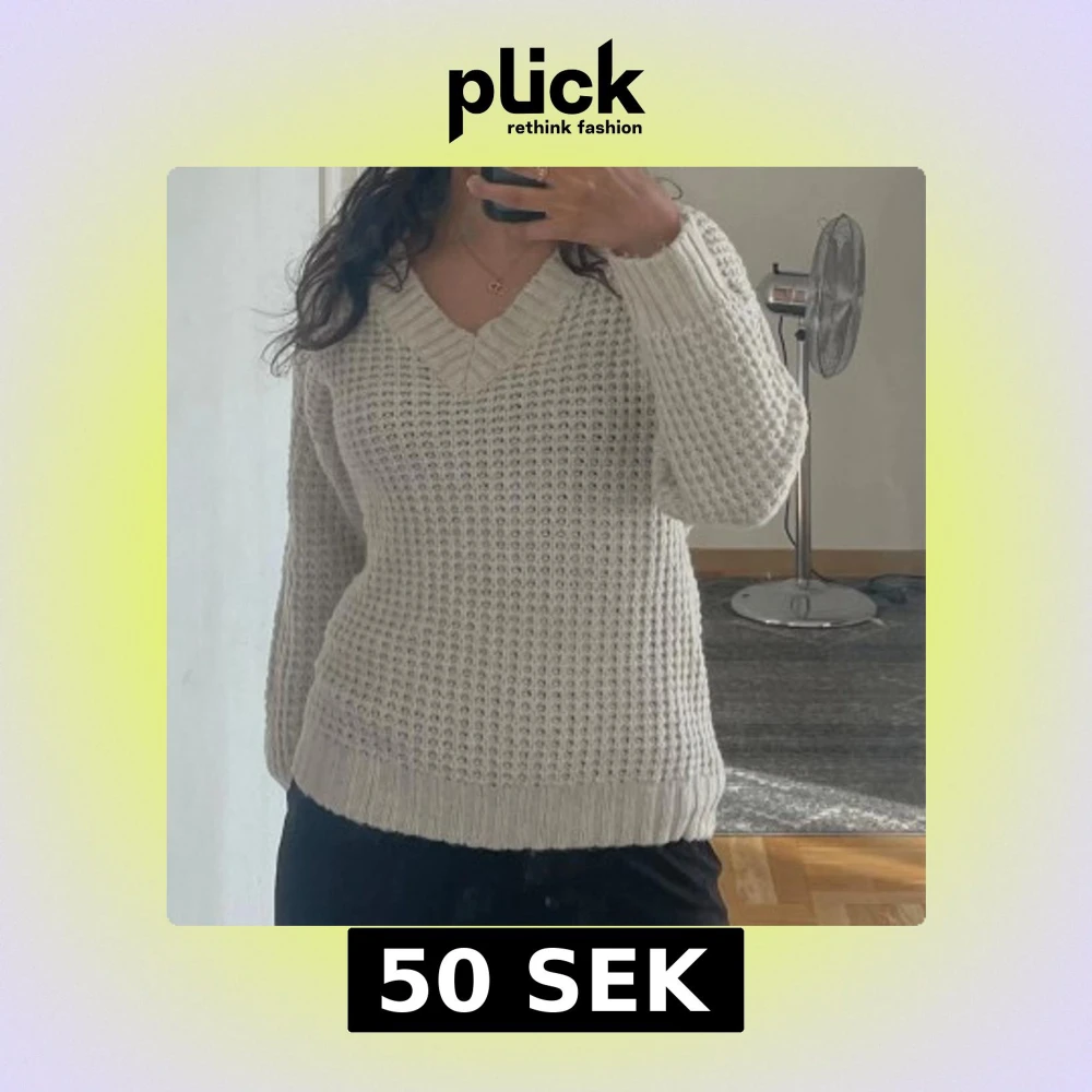 Säljer en vit stickad tröja från 157 i storlek M. Tröjan har ett grovt stickat mönster, v-ringad hals och långa ärmar med breda muddar. Perfekt för dig som gillar en chill och mysig stil under höst och vinter. Använd 2-3 gånger
