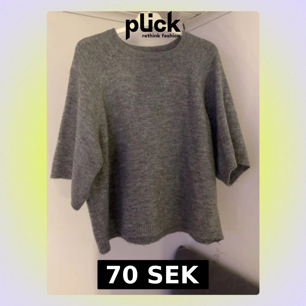 Mysig grå stickad tröja från 157 i storlek S. Tröjan har rund hals, korta ärmar och en loose passform som ger en chill vibe. Perfekt att slänga på sig när det är lite kyligt ute. Enkel och stilren design som funkar till jeans eller kjol.