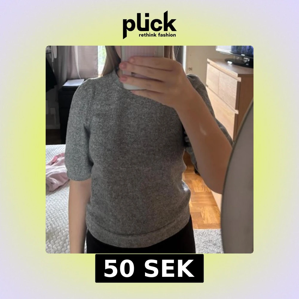 Mysig grå stickad tröja från 157 med rund hals och puffade halvlånga ärmar. Tröjan har en enkel och stilren look som passar perfekt till jeans eller kjol. Materialet är mjukt och bekvämt, och modellen har en normal passform. säljs för inte kommer till användning, använd 2ggr