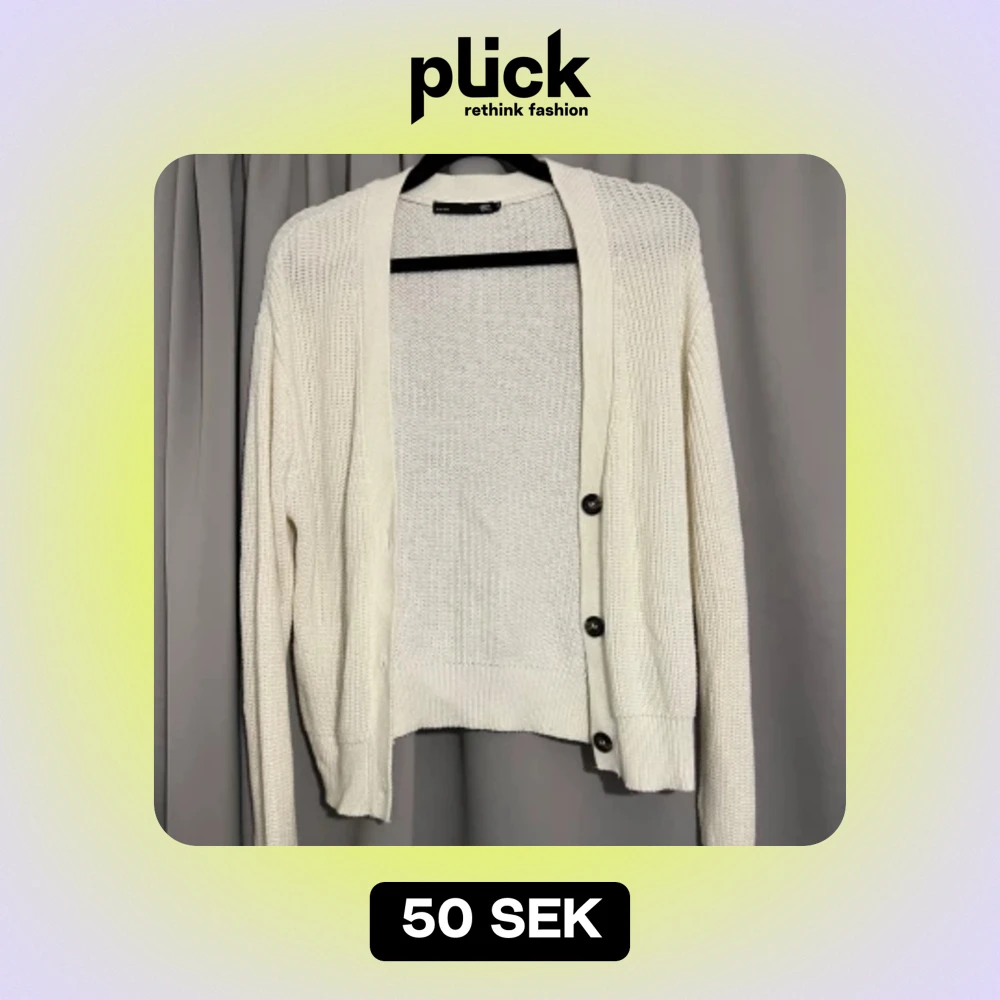 Mysig vit stickad kofta i storlek S. Perfekt för kyliga dagar med sina långa ärmar och knappar framtill. Den har en klassisk design som passar till det mesta. Superfin att ha över en t-shirt eller blus för en avslappnad look.