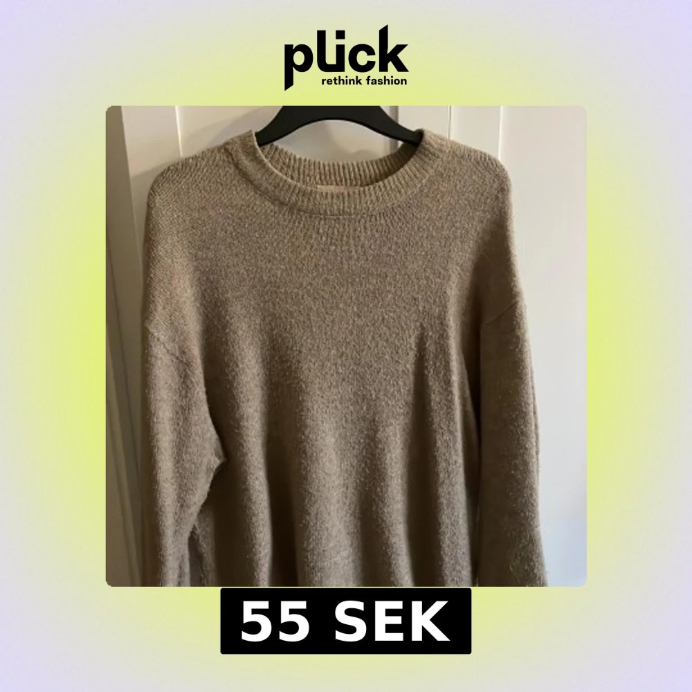 Mysig beige stickad tröja från 157 med rund halsringning och ribbade . Säljes i storlek S.