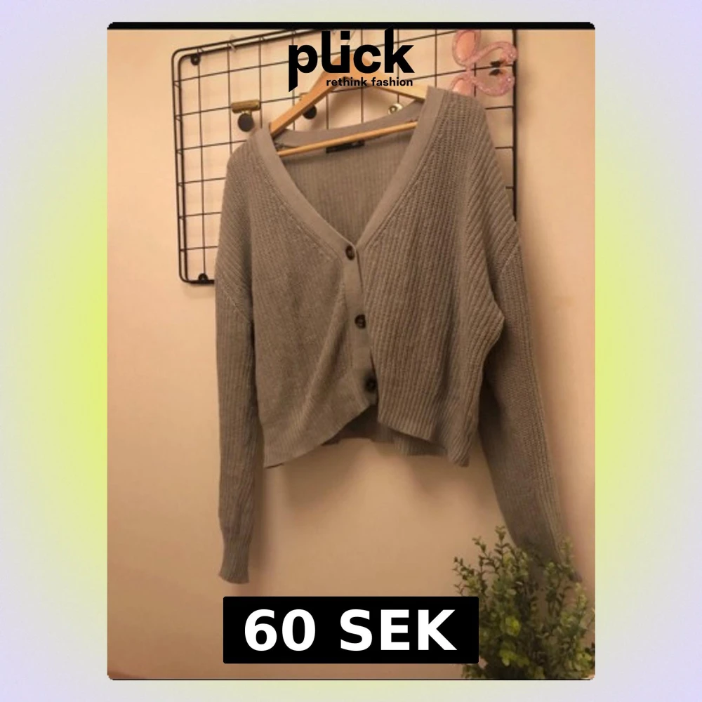 Snygg grå croppad kofta med v-ringning och tre knappar framtill. Koftan är stickad i ett ribbat mönster och har långa ärmar. Perfekt för lager-på-lager och chill stil. Passar dig som gillar enkel men trendig look.