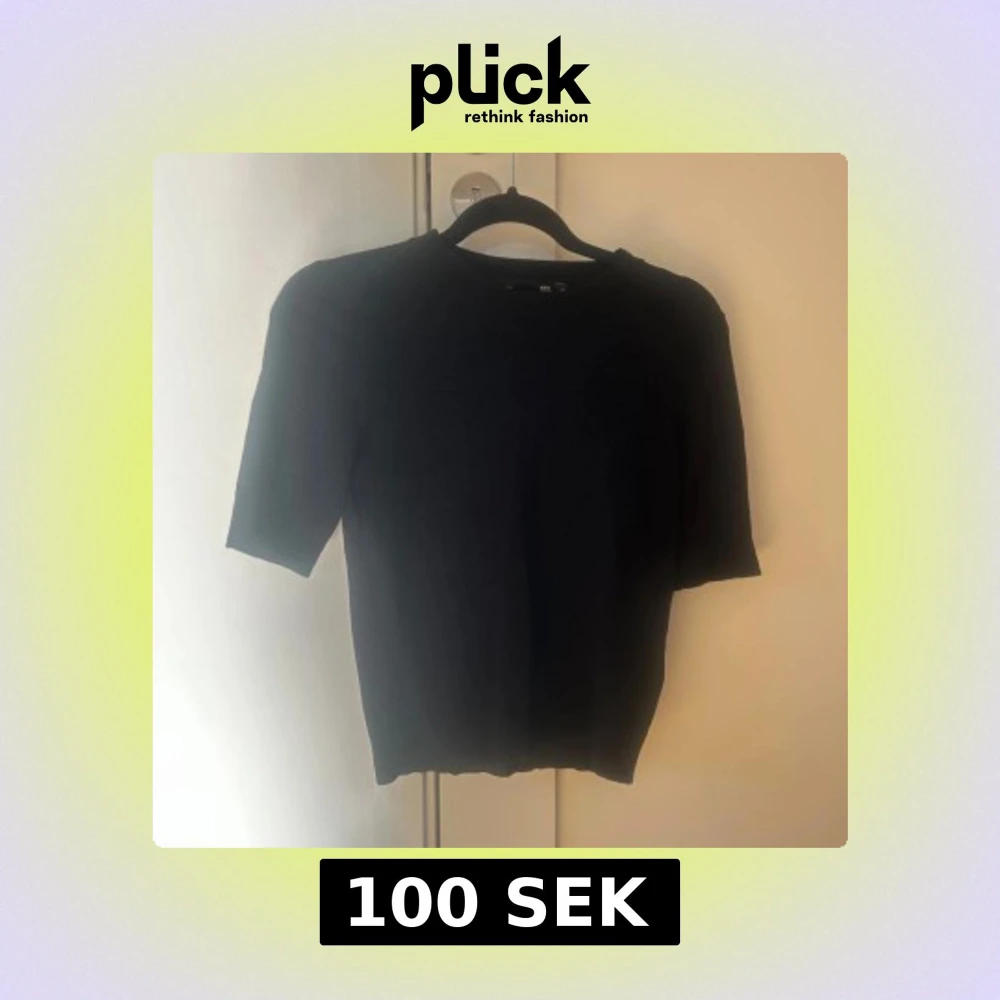 Säljer en stilren svart topp med korta ärmar. Perfekt för en minimalistisk look. Passar bra till både jeans och kjol.