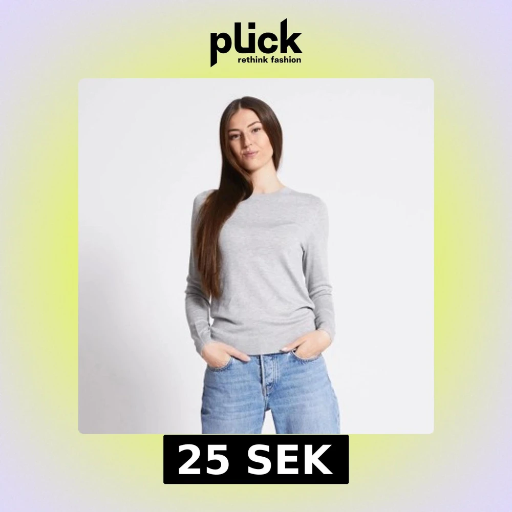 En stilren ljusgrå stickad tröja med rund halsringning och långa ärmar. Original pris 150 kr, säljer för 25. Säljer då den inte passade.