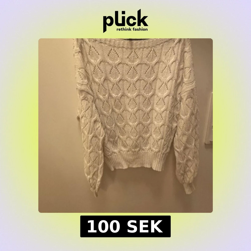 Mysig vit stickad tröja med ett fint hålmönster. Tröjan har långa ärmar och ribbstickade muddar vid ärmslut och nederkant. Perfekt för kyligare dagar.