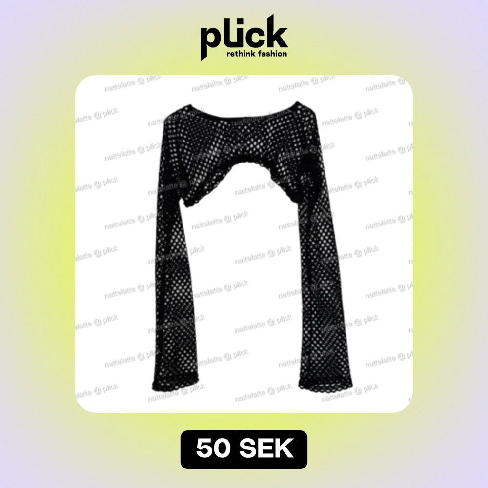 Svart hålstickad långärmad croptop. Slutar ungefär ovanför brösten. Endast testad. Storlek M men liten i storleken!