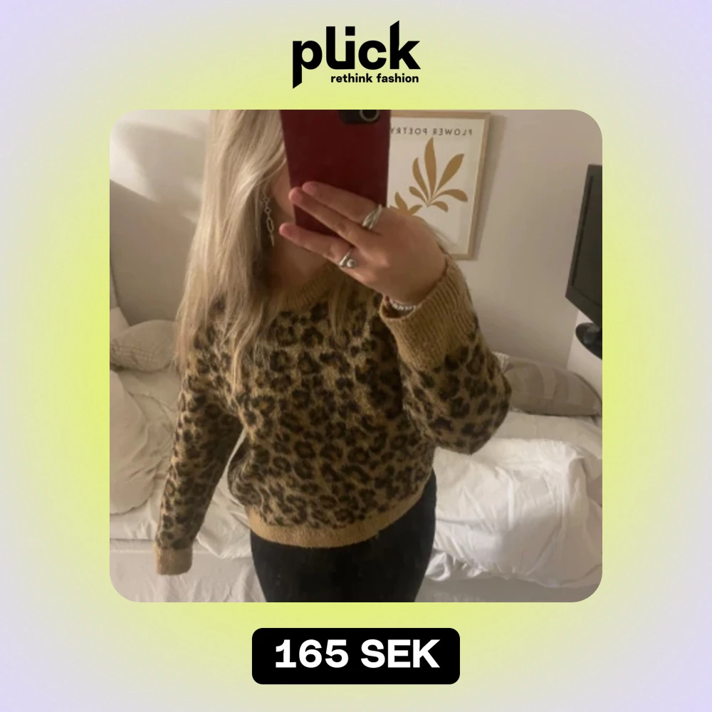 En stickad leopard tröja i st L, själv har jag S/M i tröjor så den e ganska liten i storleken