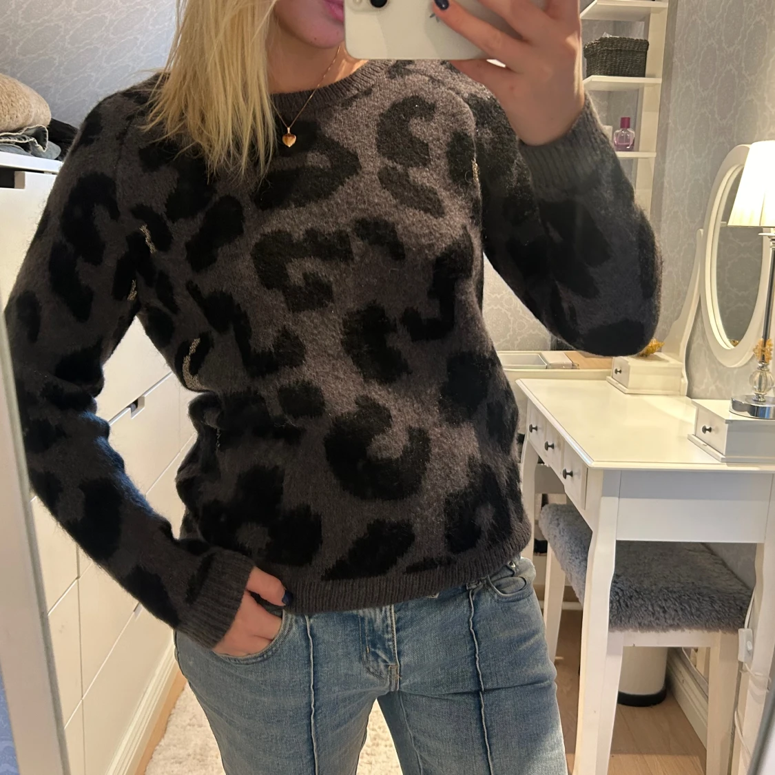 Säljer denna stickade leopard tröja, jättefint skick, väldigt unik och bra material därav priset, men priset går att diskutera vid snabb affär🩷
