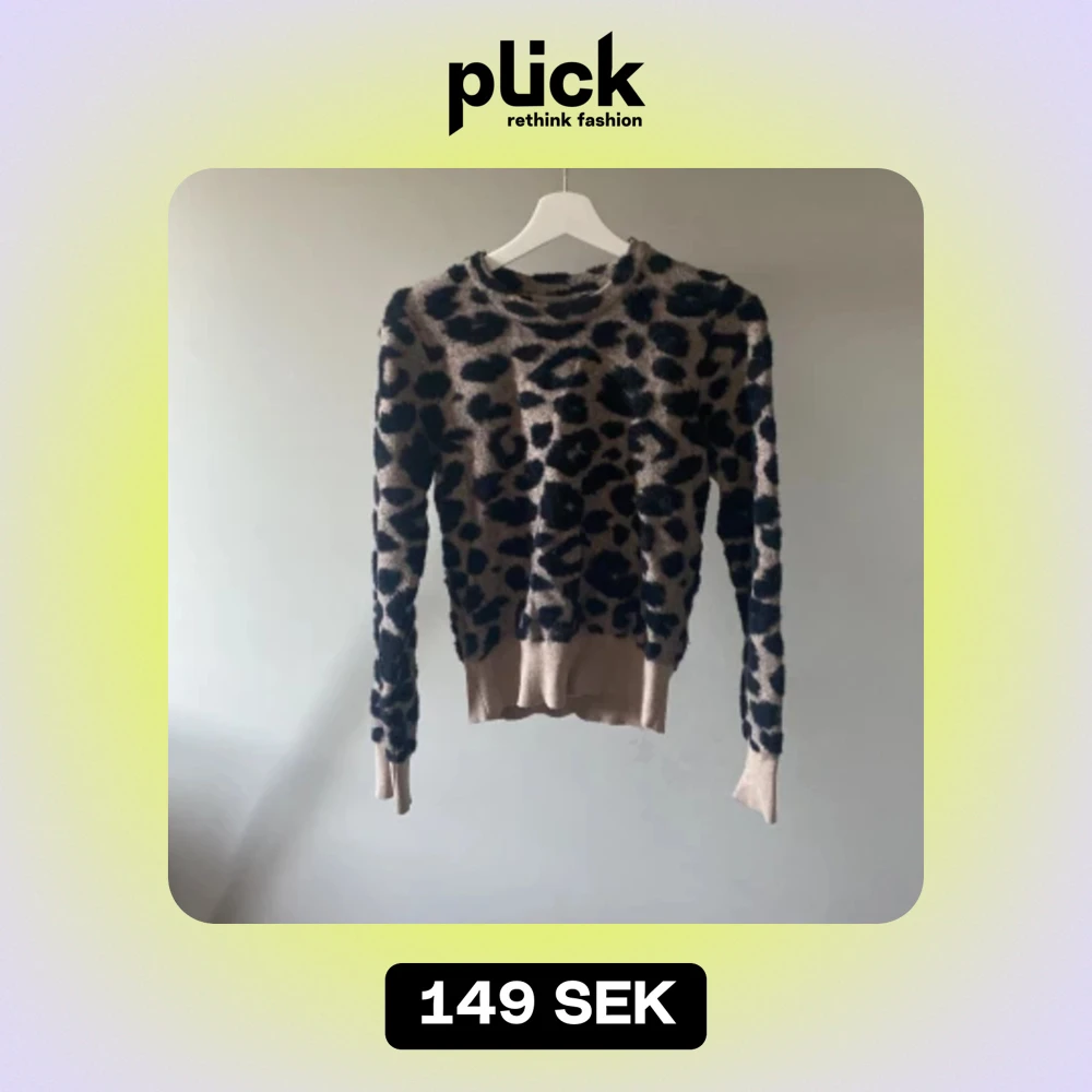 En bekväm och stilren ulltröja från Dilvin med ett leopardmönster i svart och beige. Tröjan har långa ärmar och ribbstickade muddar vid ärmslut och nederkant.