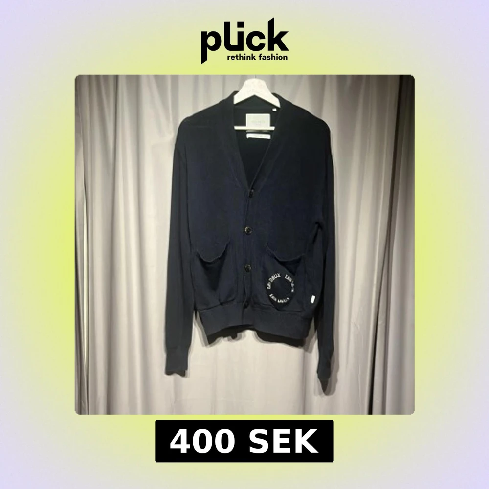 Snygg mörkblå kofta från Les Deux med broderad logga på fickan. Koftan har v-ringad hals, tre knappar framtill och två fickor. Materialet är stickat och ger en chill och stilren vibe. Perfekt för lager-på-lager och passar till jeans eller chinos. Nypris 1000kr