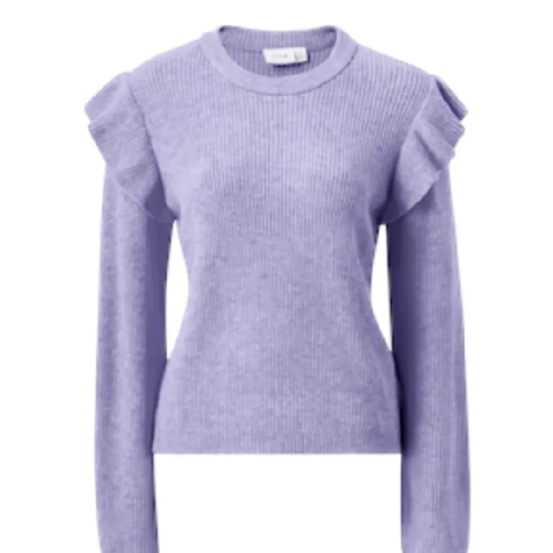 Säljer denna jättefina stickade tröjan med volang i lila från vero Moda❤️ strl xs BRA SKICK