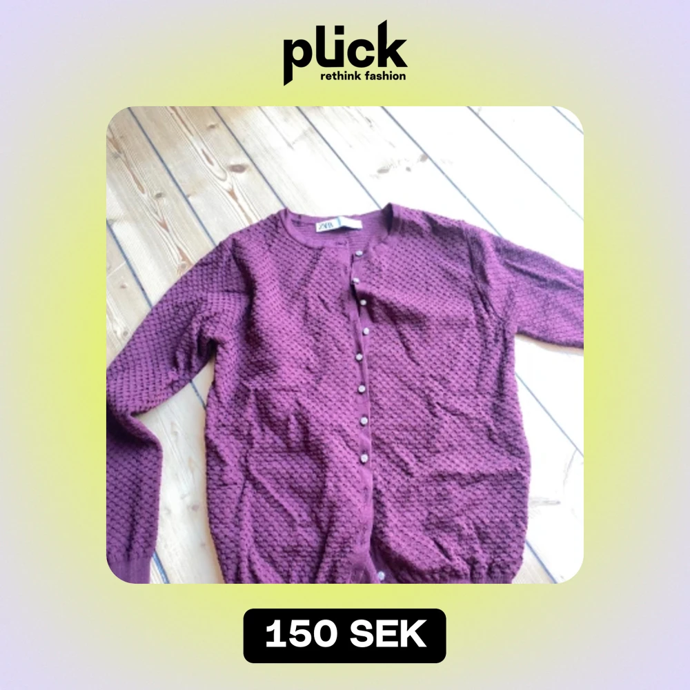 Säljer en superfin lila stickad kofta från Zara. Den har ett snyggt texturerat mönster och knäpps med glittriga knappar framtill. Perfekt för höst och vinter när du vill vara både varm och stilren. Koftan är i storlek M och är i mycket bra skick. Passar perfekt till både vardag och fest!