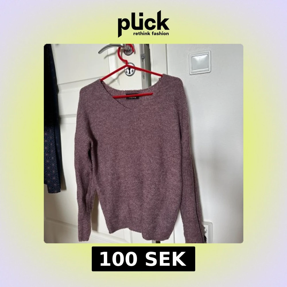 Mysig lila stickad tröja från ONLY med v-ringning och lång ärm.