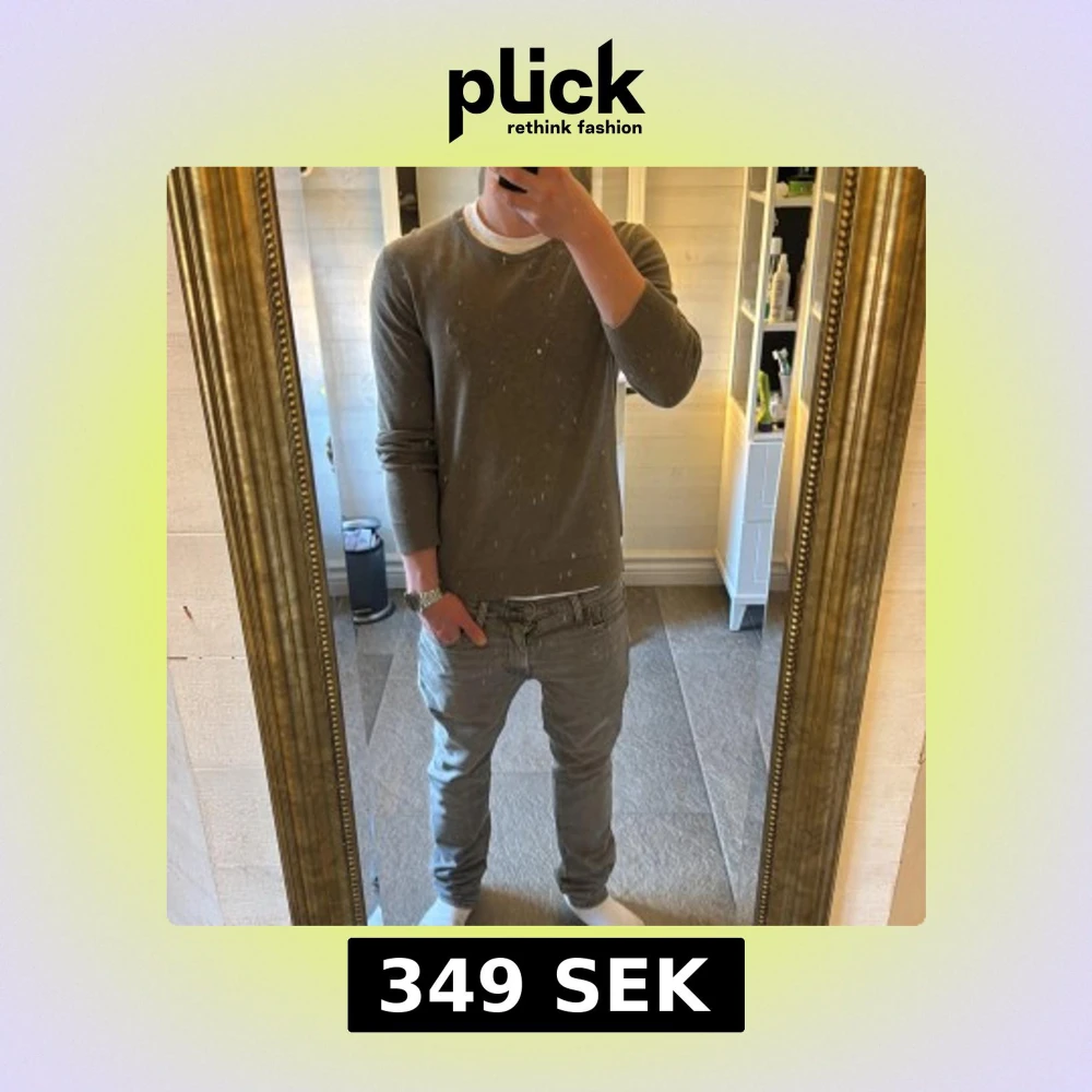 Säljer en enkel grå grön stickad tröja med rund halsringning. Tröjan har långa ärmar och en klassisk passform. Perfekt för lager-på-lager och passar till det mesta i garderoben. Storlek s. Ny pris ca 800