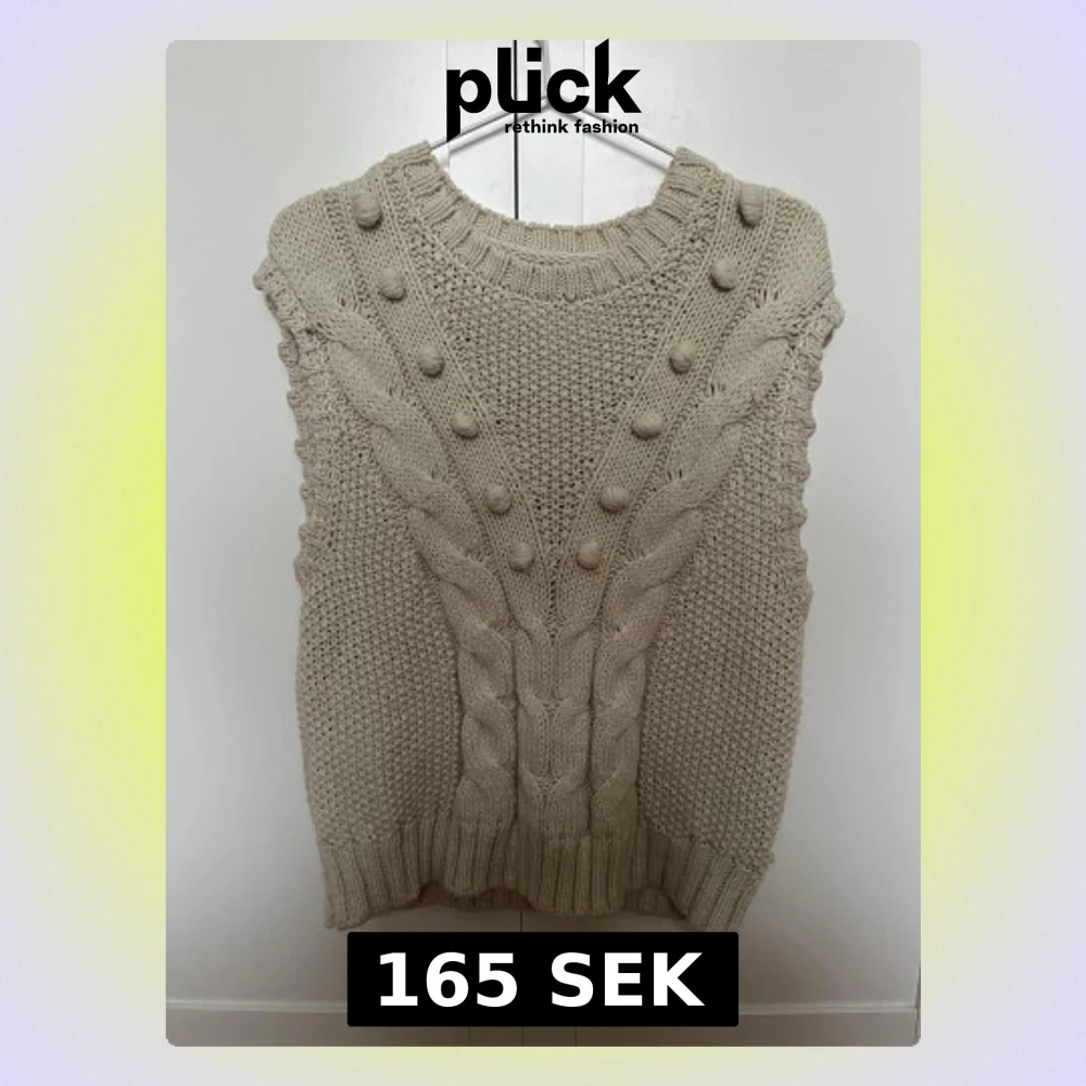 Stickad beige kortärmad tröja med fina detaljer. Använd några gånger men är i mycket bra skick. Storlek S/M. 🌸