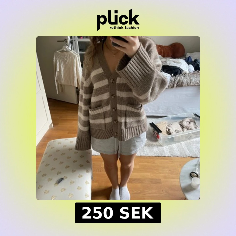 Beige och vit randig kofta från Lindex
