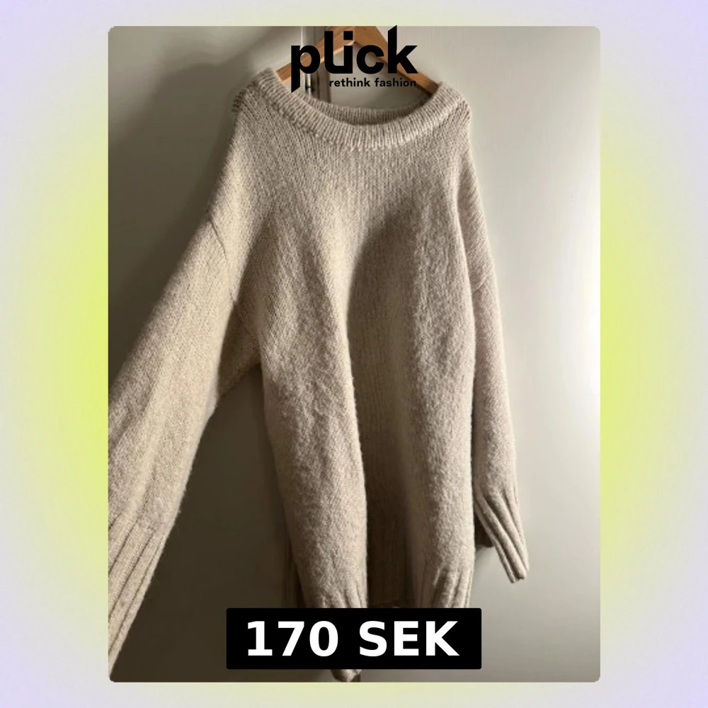 Mysig beige stickad tröja från Lindex i storlek L. Tröjan har en rund halsringning, långa ärmar och breda ribbade muddar vid ärmslut och nederkant. Perfekt för lager-på-lager och chill höst- och vinterstil.