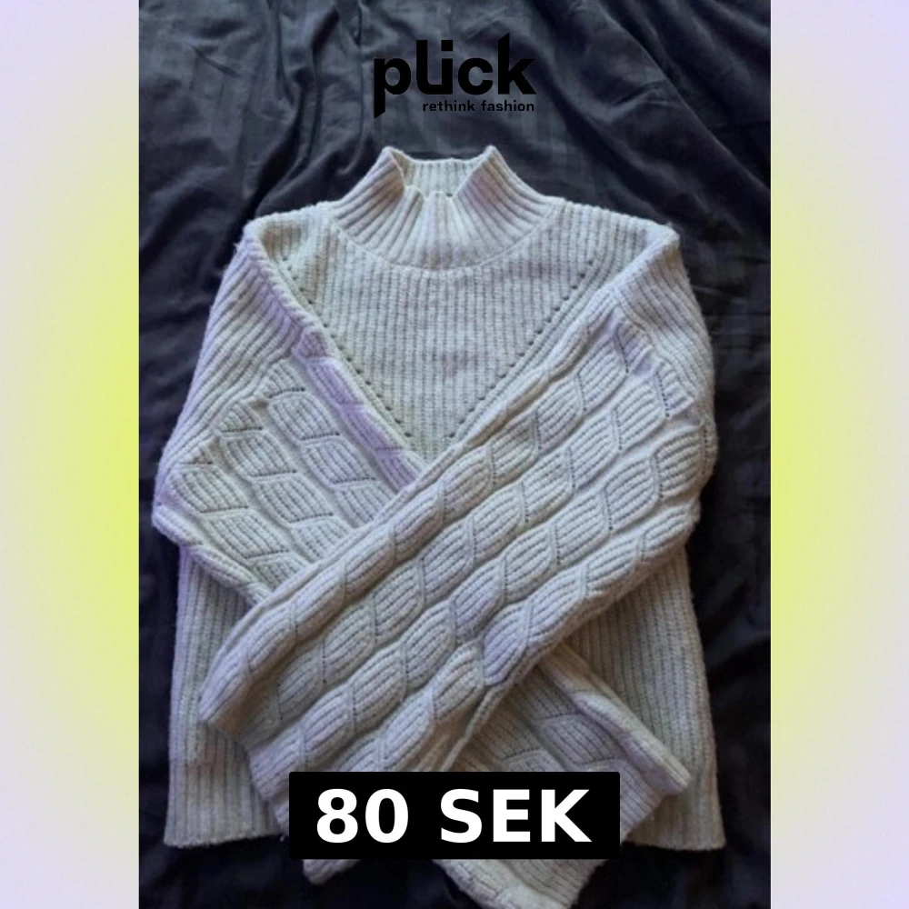 Säljer en vit stickad polotröja med högt ribbat krage från Lindex! 🤍