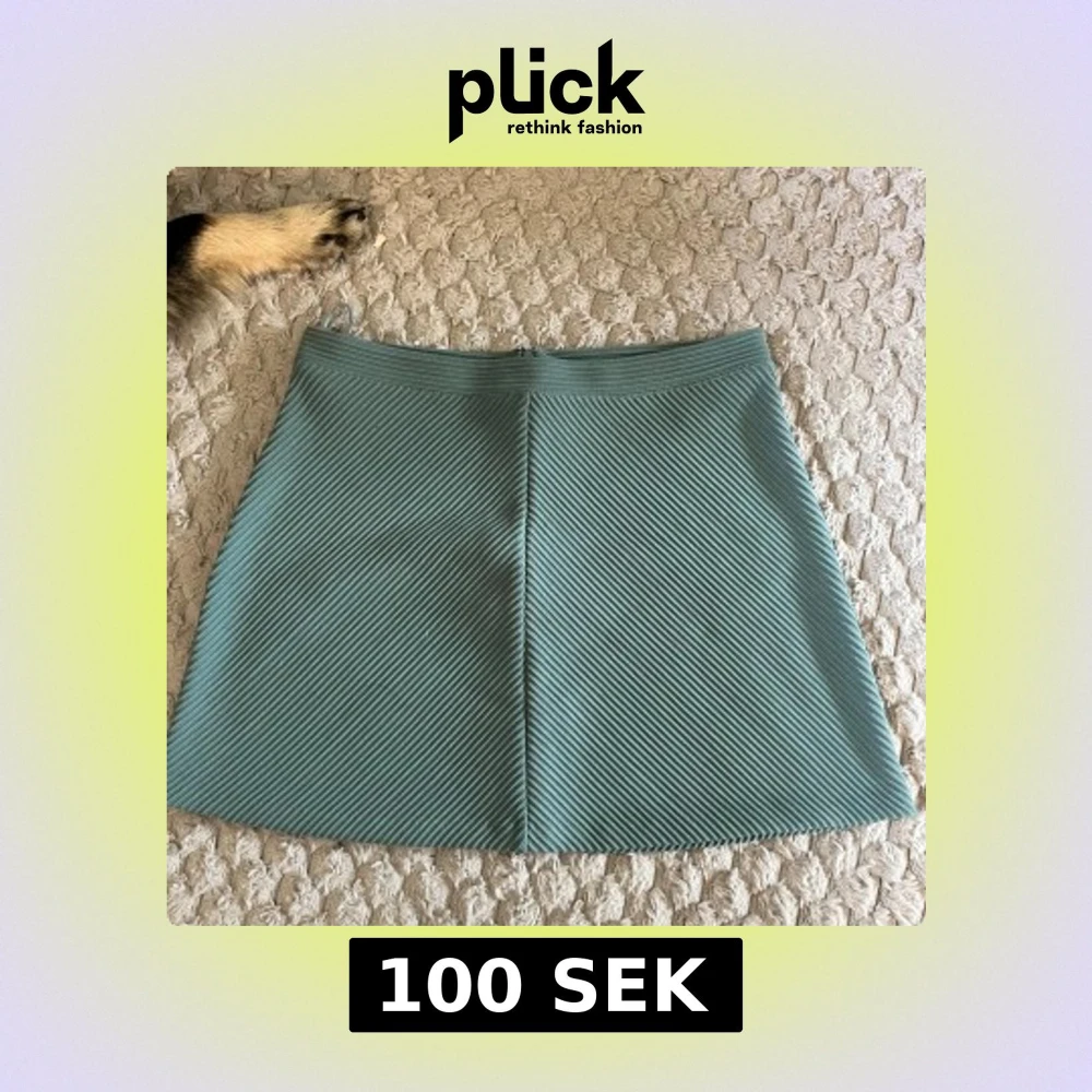 Snygg grön kortkjol från Lindex med ribbat tyg och diskret dragkedja i sidan. Kjolen har en rak passform och diagonala ränder som ger en cool struktur. Perfekt att styla med en enkel topp eller stickad tröja.