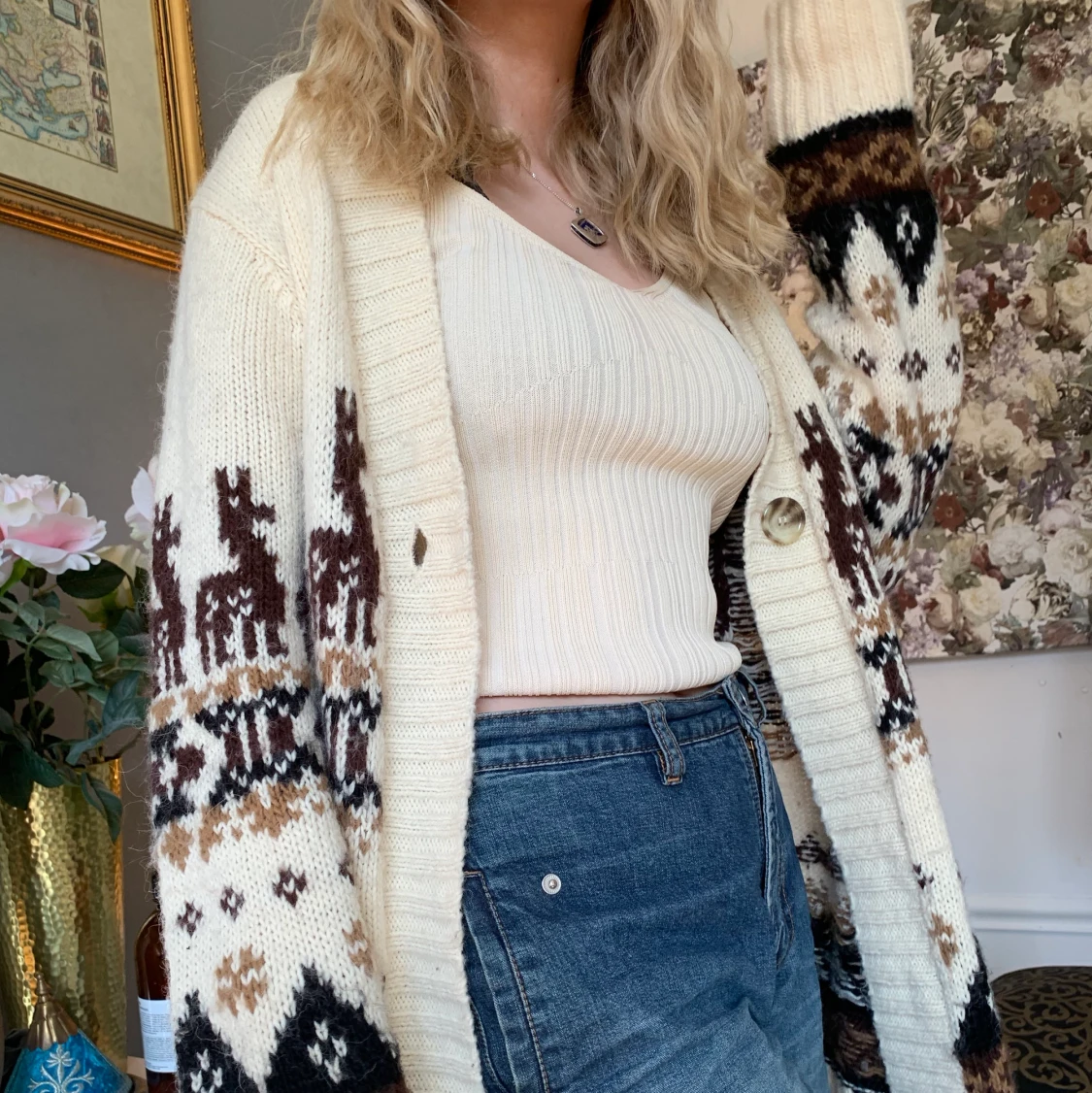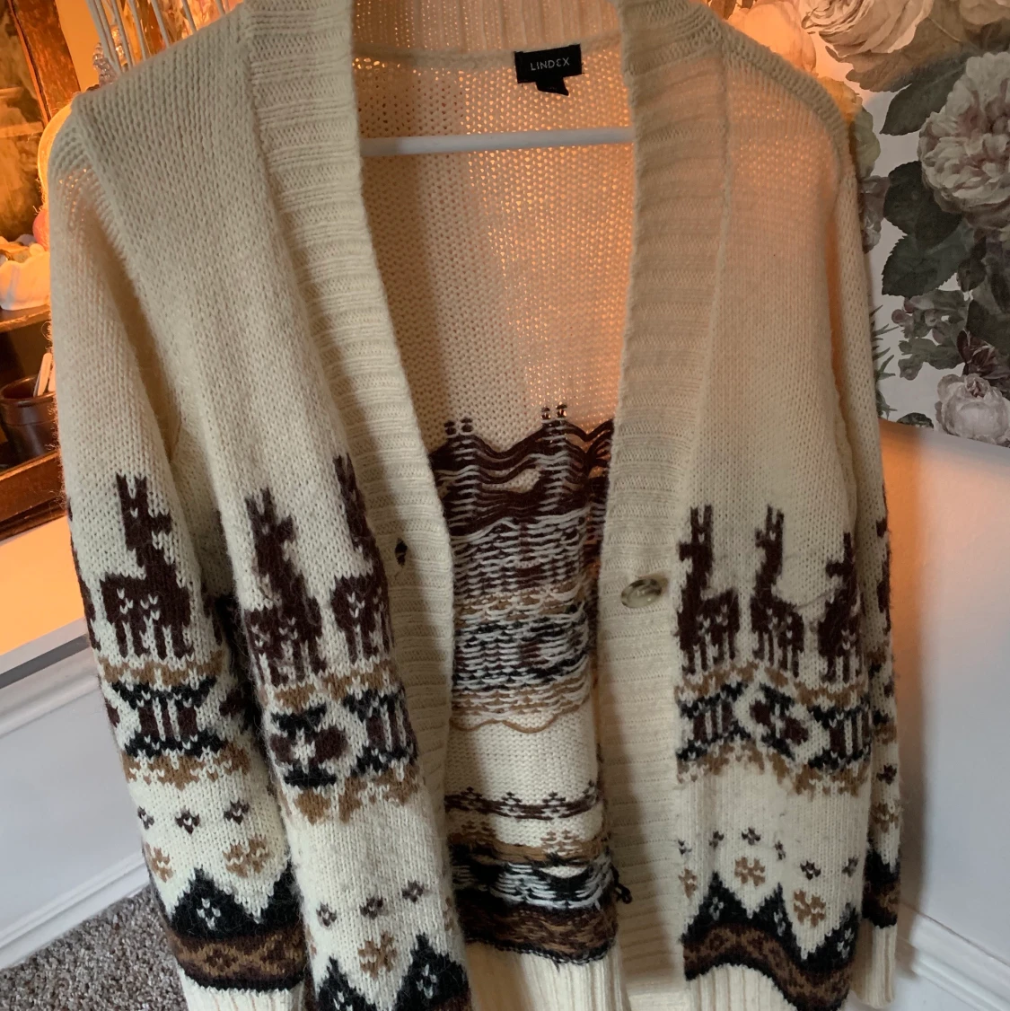 Säljer denna stickade kofta. Storleken är XL och den passar perfekt för en en mer oversized look.