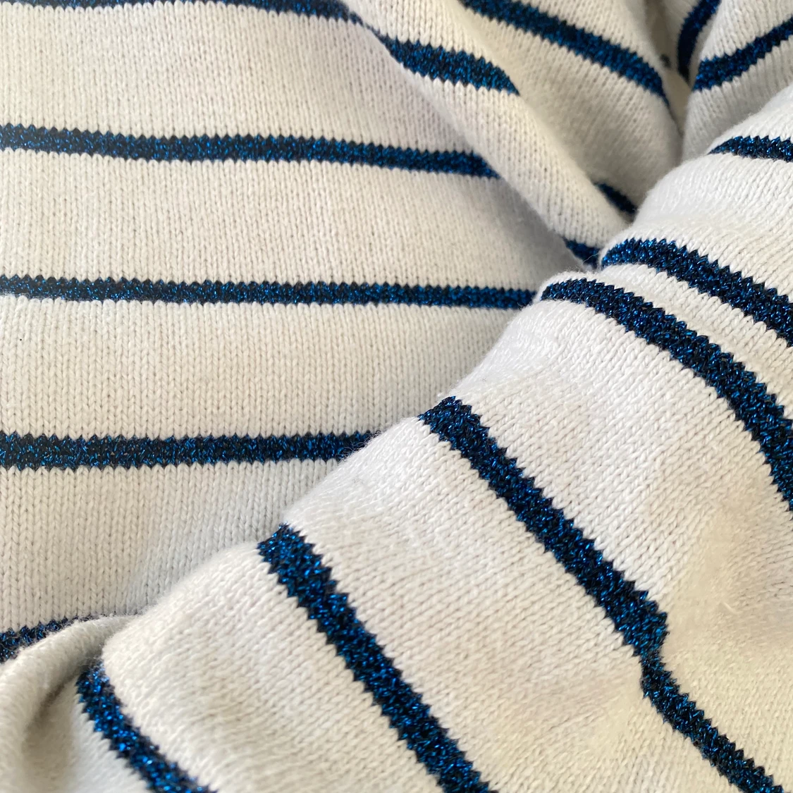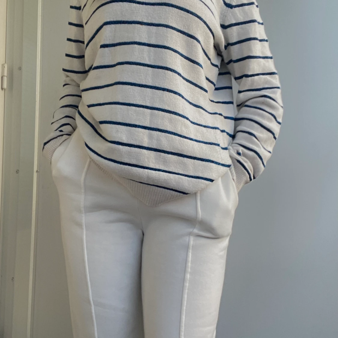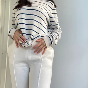 Jättefin stickad tröja med ränder i svart/blå tråd. Enkel att styla samt mysig nu till vintern. Sälj för 170kr, vid flera intresserade så budar man. Kan fraktas och mötas upp i Helsingborg. OBS köparen står för frakten 💕💕