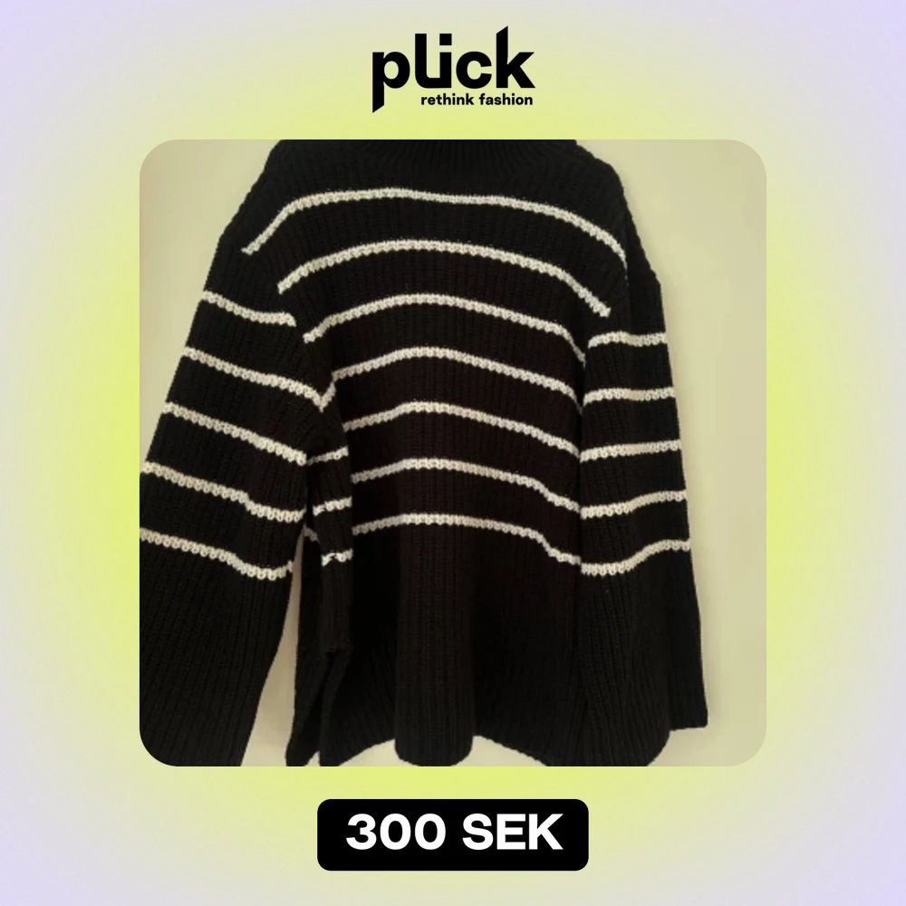 Randig stickad tröja med polo krage från Lindex🤍🖤