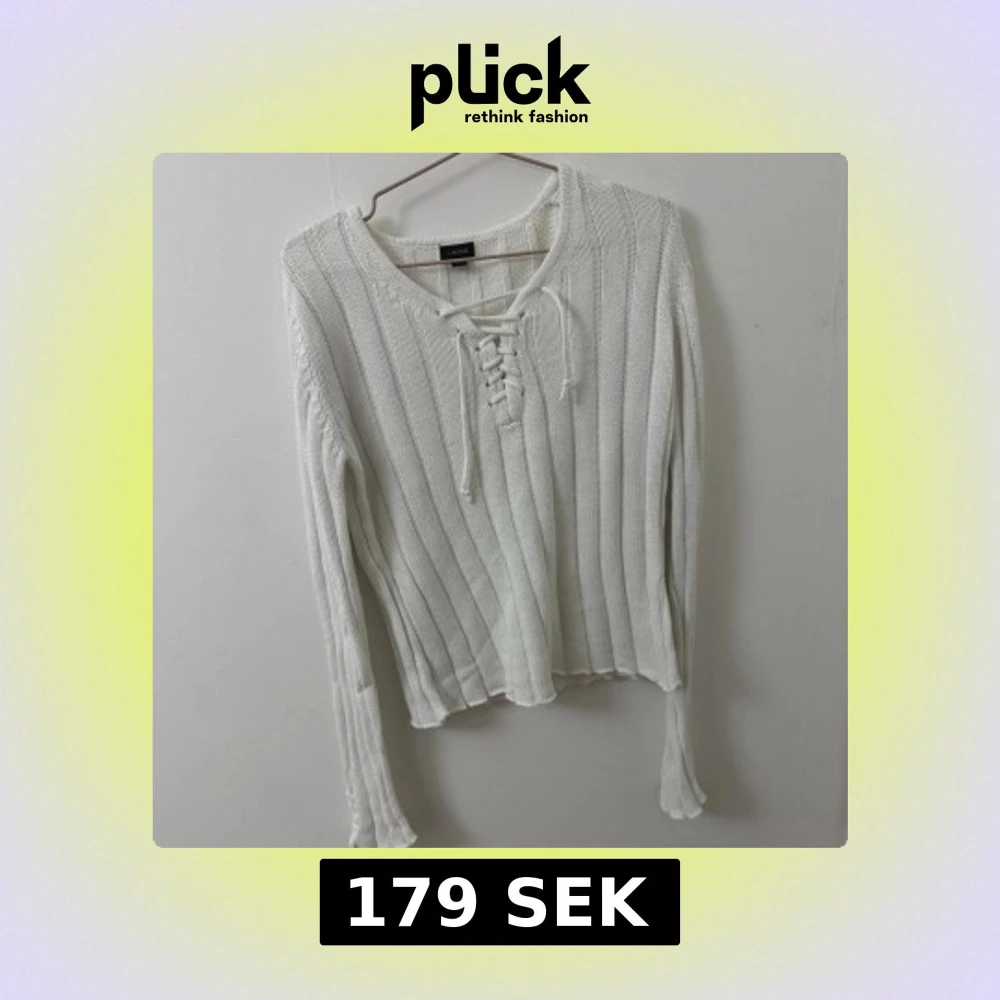 Vit stickad tröja från Lindex i storlek S. Tröjan har ribbat mönster, snörning vid halsringningen och långa ärmar.