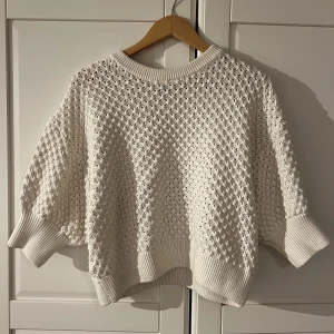 Säljer min vita stickade trekvartsärmade tröja då den tyvärr inte kommer till användning, den är i storlek M men skulle säga att den är som en S💕