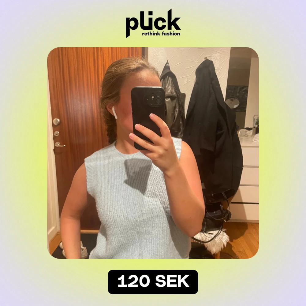 Säljer en superfin ljusblå ärmlös topp i stickat material. Perfekt för sommardagar eller som ett lager under en jacka. Toppen har en enkel och stilren design som gör den lätt att matcha med olika outfits. Passar både till vardags och fest!