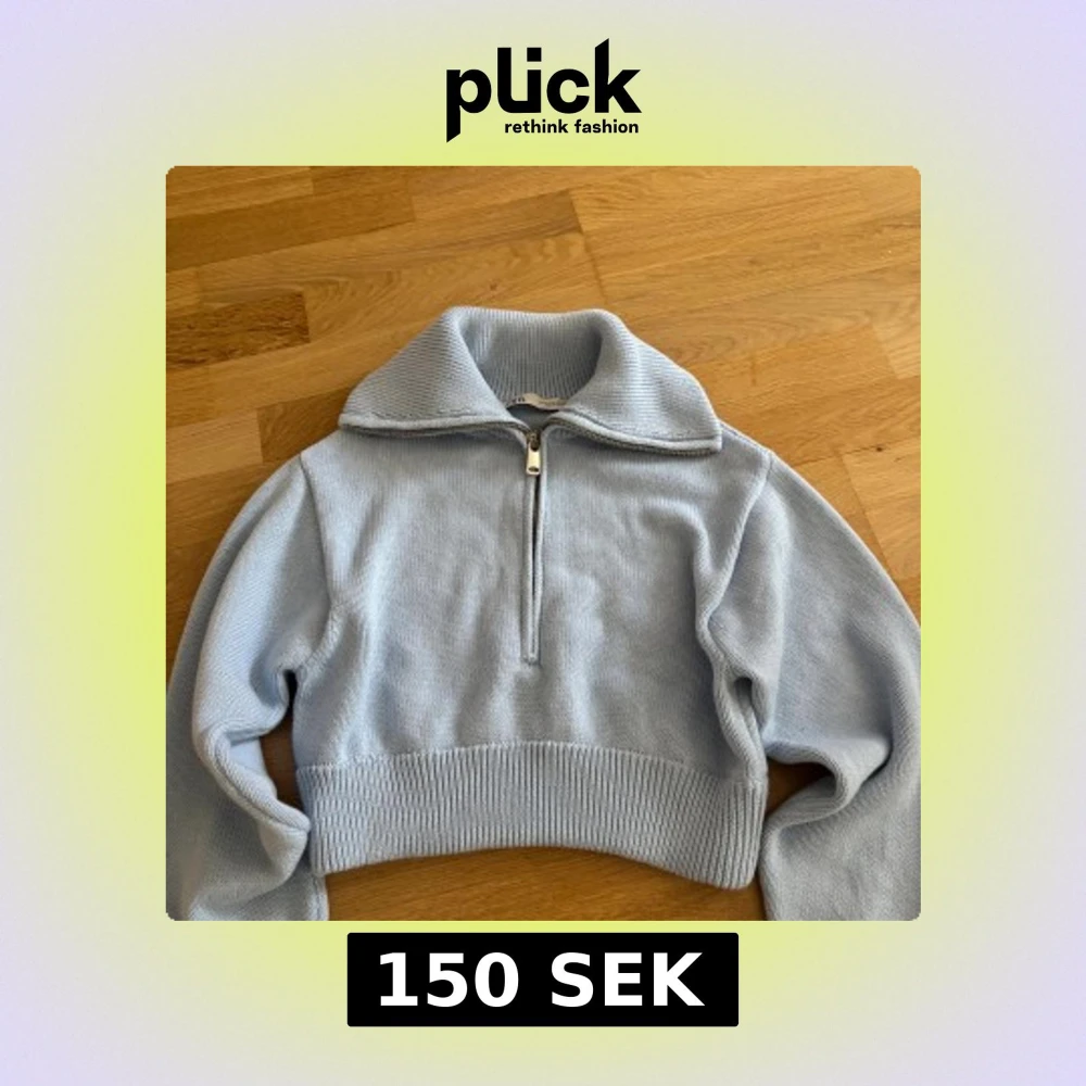 Superfin ljusblå stickad tröja från Zara med hög krage och half zip-dragkedja. Tröjan har bred ribbad mudd nedtill och vid ärmslut, vilket ger en snygg och modern look. Ordinarie pris: 450kr