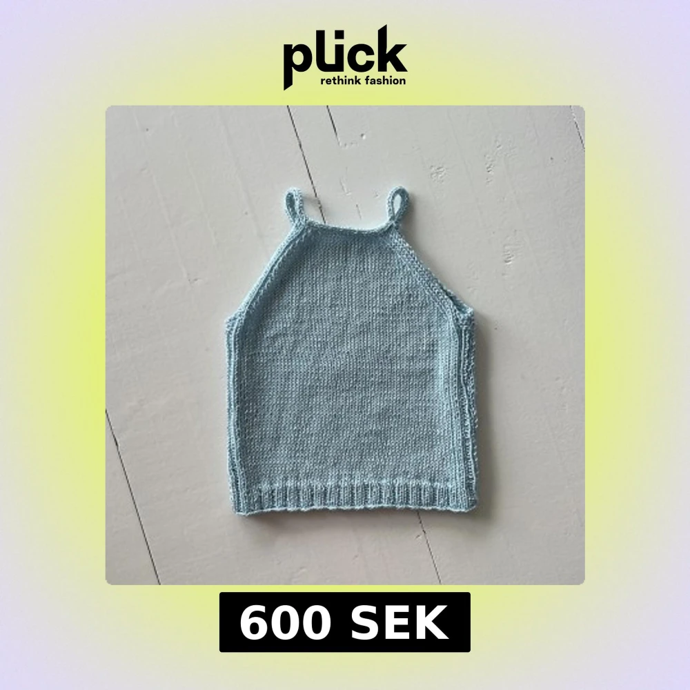 Supersöt ljusblå stickad linnetopp med smala axelband och rak passform. Toppen har ribbad nederkant och är perfekt för varma dagar. Enkel och stilren design som passar till jeans eller kjol.