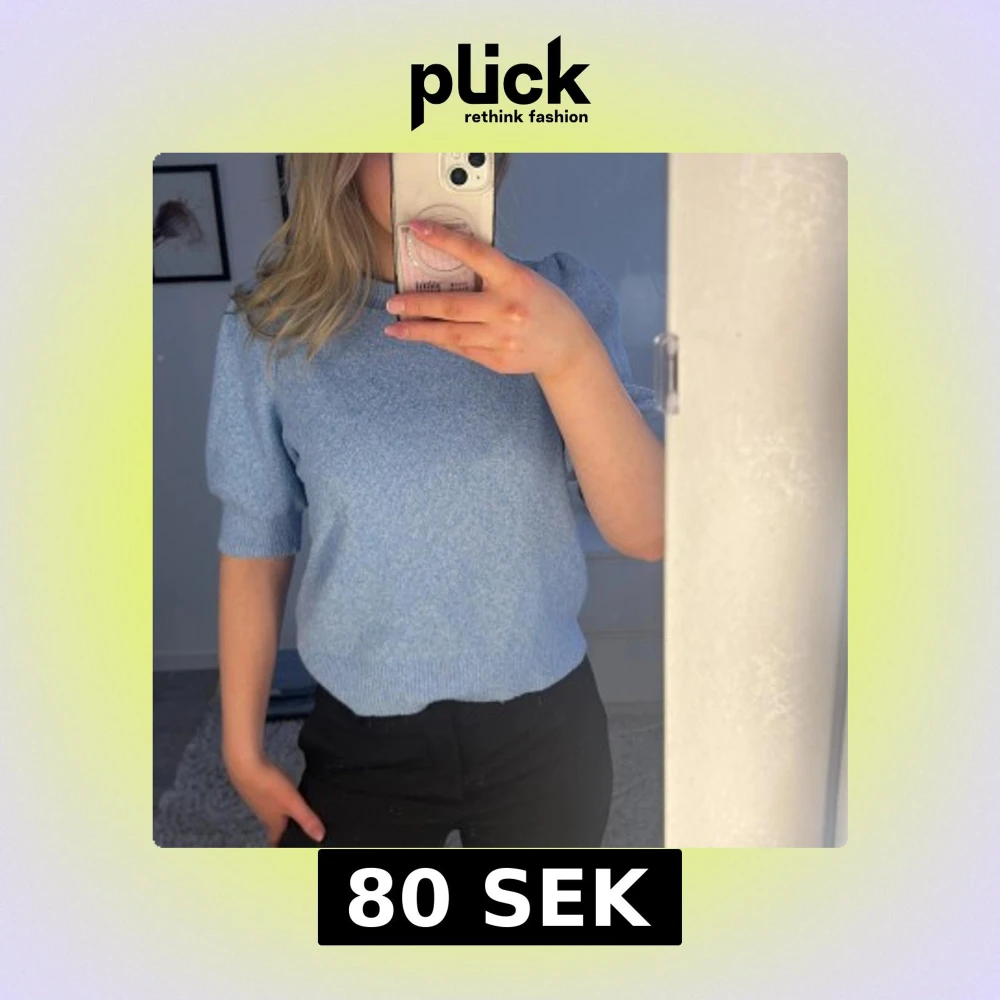 Söt ljusblå stickad topp med korta ärmar från vero moda. Perfekt till våren och sommaren!💛 sparsamt använd!
