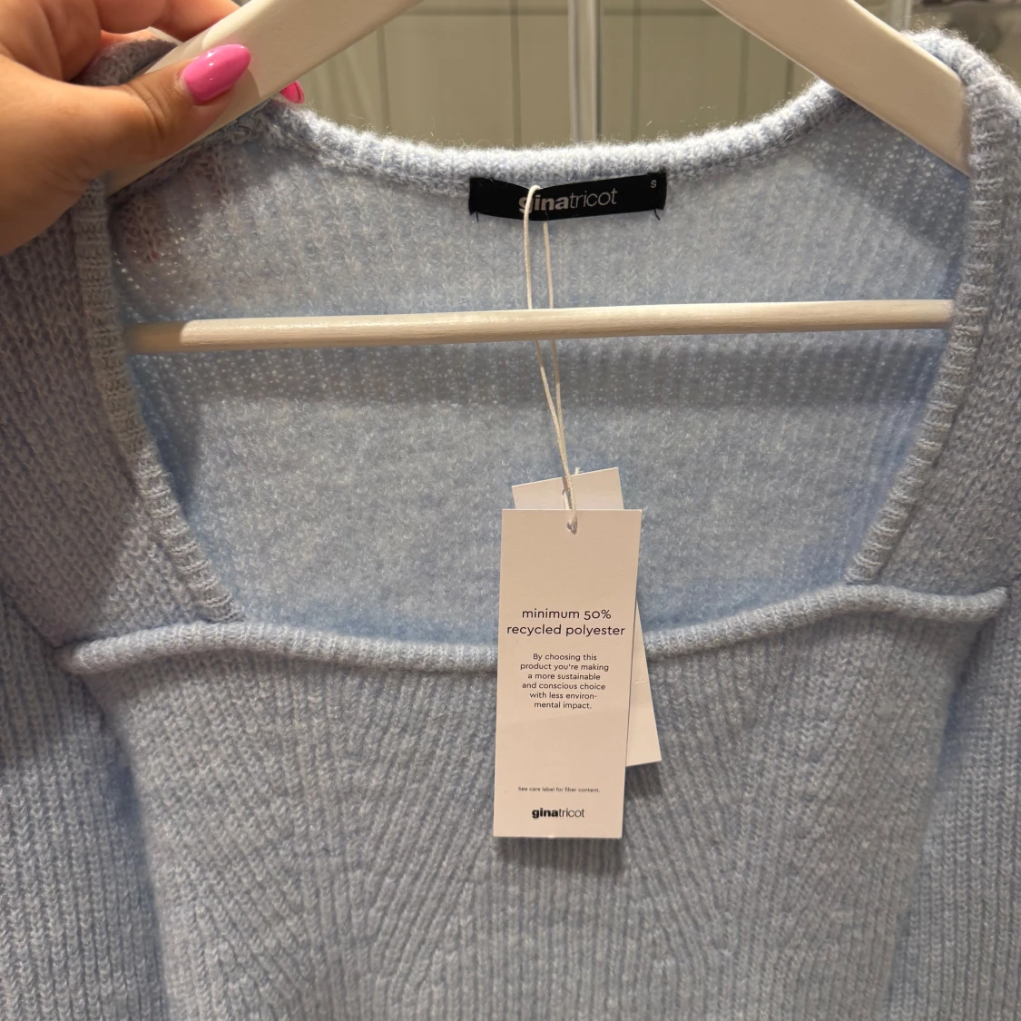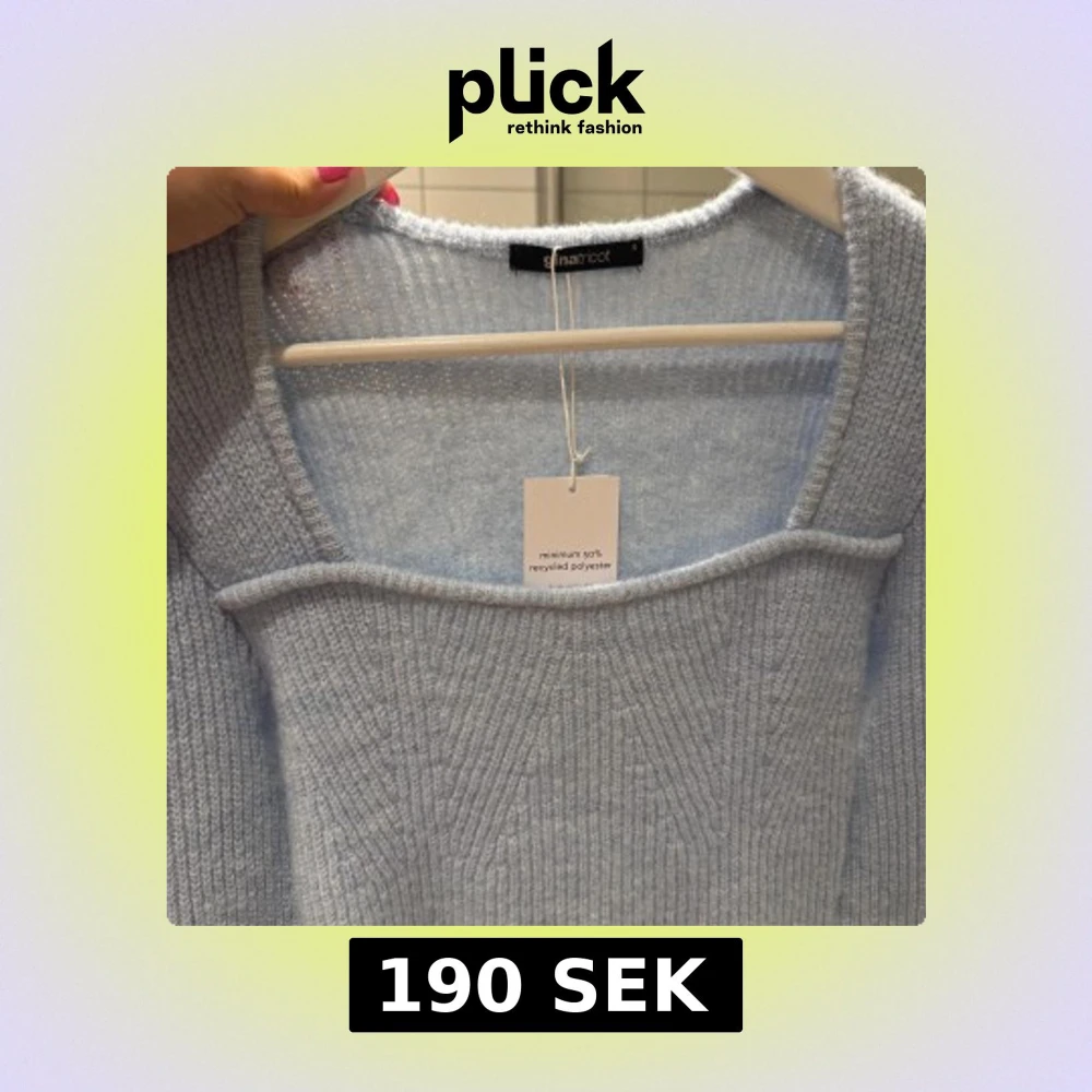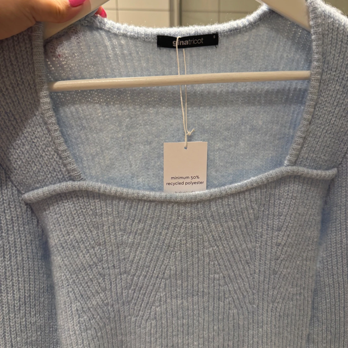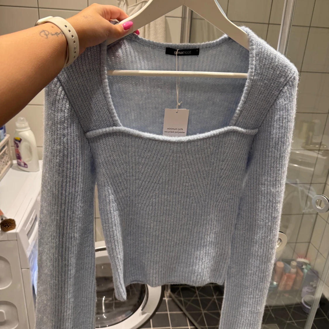 Ljusblå stickad topp från Gina med prislapp kvar