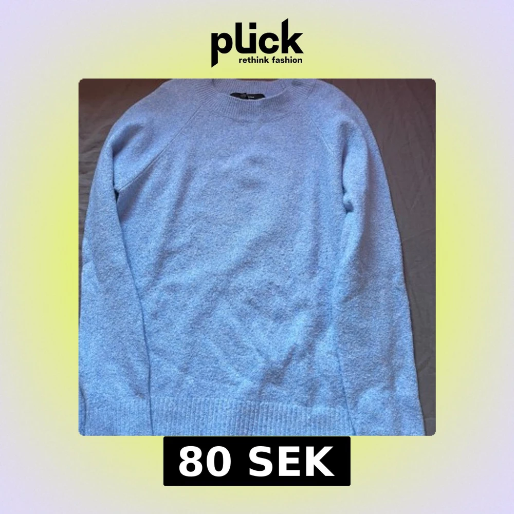 Säljer en enkel och stilren ljusblå stickad tröja med rund halsringning.