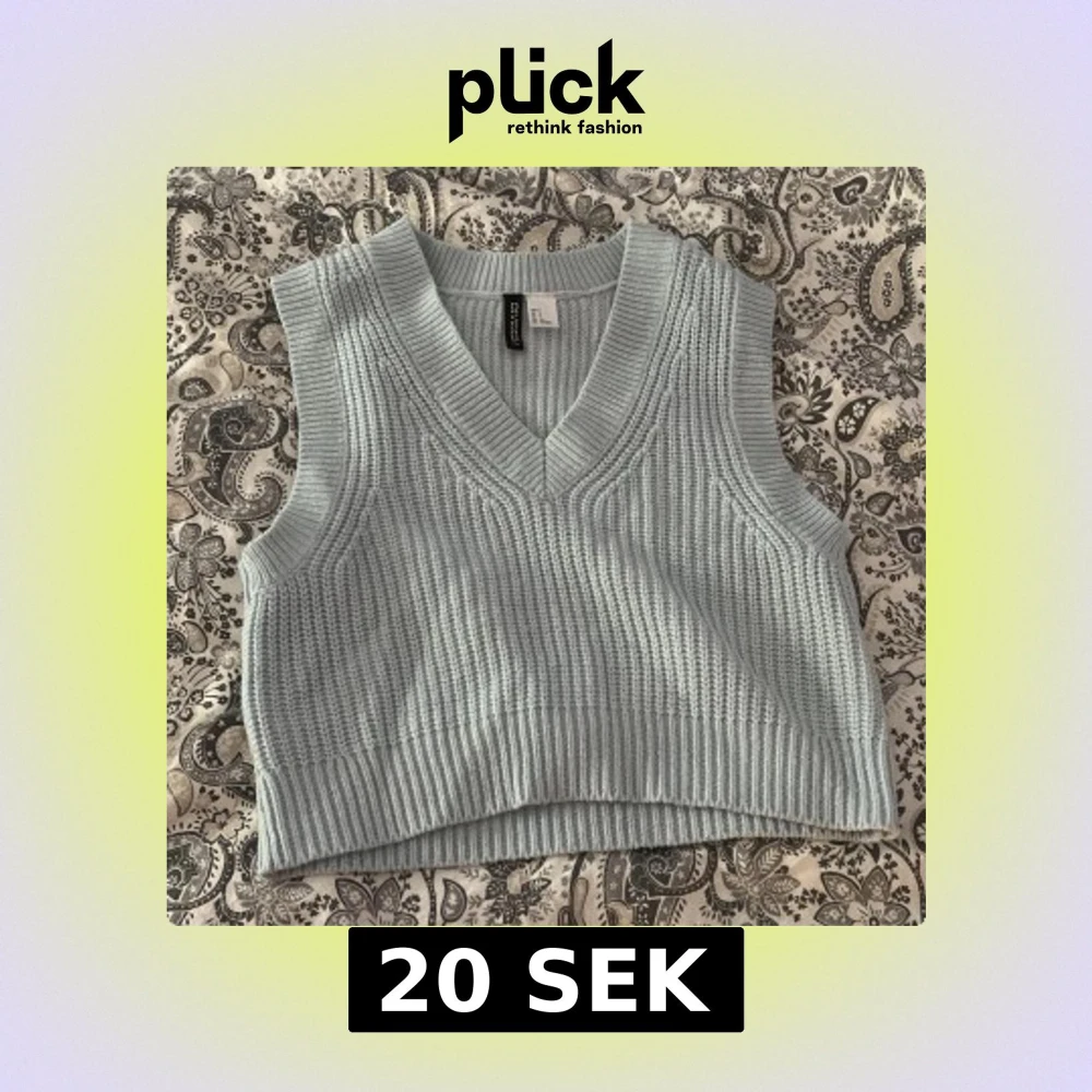 Snygg ljusblå stickad väst från H&M med bred v-ringning och ribbade kanter. Pris går att diskutera!❤️❤️