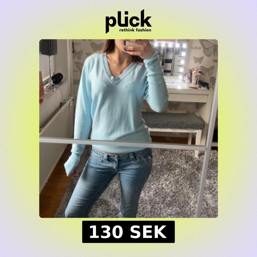 Superfin ljusblå stickad tröja med v-ringning och långa armar❣️säljer denna eftersom att det inte kommer till användning längre💕