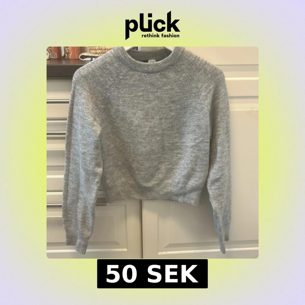 Mysig ljusgrå stickad tröja från H&M med rund halsringning och ribbade muddar vid ärmslut och nederkant. Perfekt för lager-på-lager och enkel att matcha med olika outfits💕