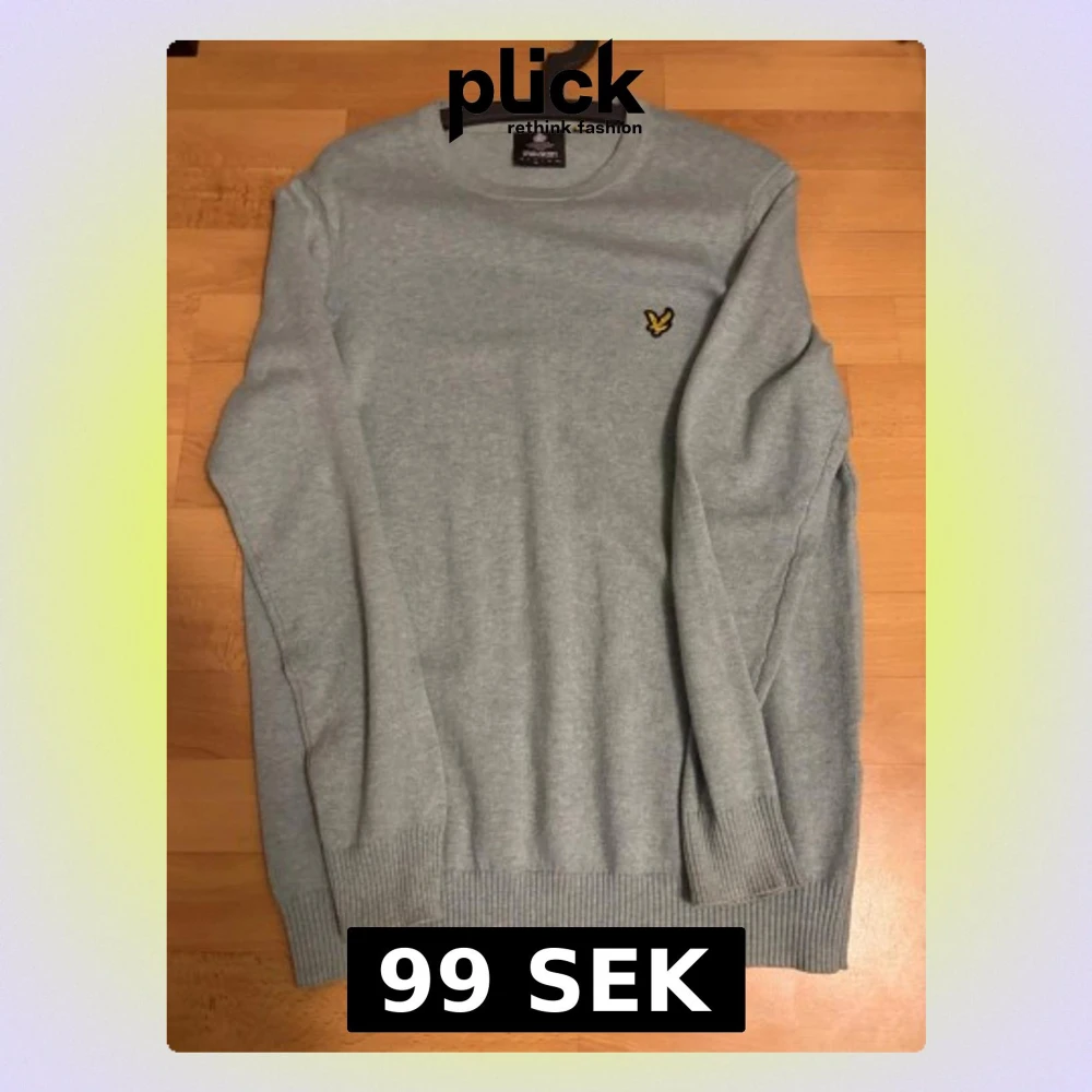 Snygg ljusgrå stickad tröja från Lyle & Scott med rund hals och klassisk gul logotyp på bröstet. Tröjan har långa ärmar och ribbade muddar vid ärmslut och nederkant. Perfekt för dig som gillar stilrena och enkla plagg. Ljusgrön