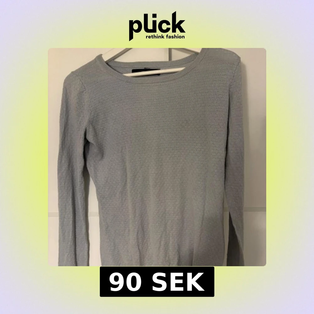 Snygg ljusgrå stickad tröja med diskret strukturmönster. Tröjan har rund hals och långa ärmar, perfekt för dig som gillar enkel och stilren design. Passar till jeans eller kjol och är supermjuk mot huden.
