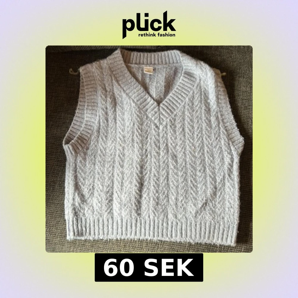Mysig ljusgrå stickad väst från Lindex med kabelstickat mönster och bred ribbad kant vid hals, ärmhål och nederkant. Perfekt att slänga över en skjorta eller t-shirt för en chill och trendig look.