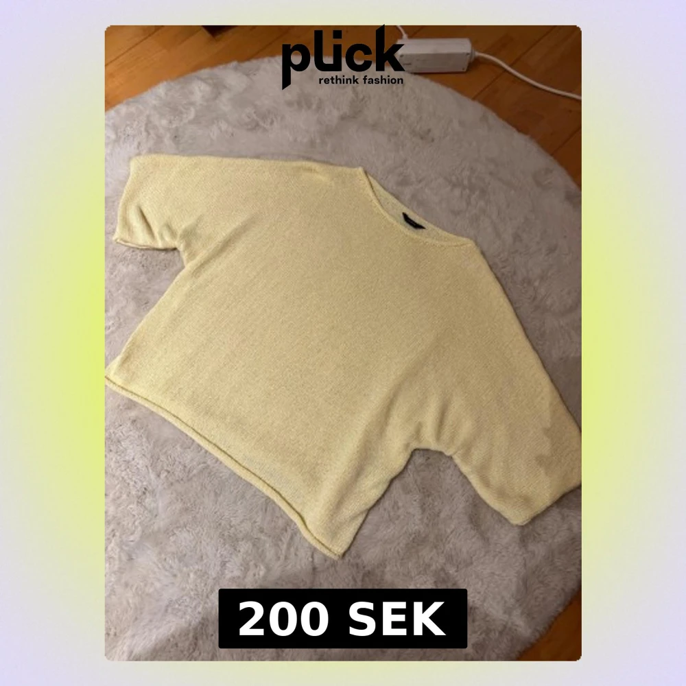 Ljusgul stickad tröja med korta ärmar. Skulle säga storlek M, sitter oversize💕